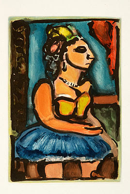 I teach Mixed Media portraiture on Tuesday mornings this semester and today we worked with charcoal, ink, brushes, and a bit of color. Some of the students' work brought to mind the work of Georges Rouault. Here are a few of his prints and paintings. That bold thick black line with those jewel toned colors. So rich! He was trained in the art of stained glass. These make me think of Ashley Bryan's stained glass stations of the cross...With all the white outdoors at this time of year and today's pale gray sky, my eyeballs are starved for color - looking at these is a good remedy!